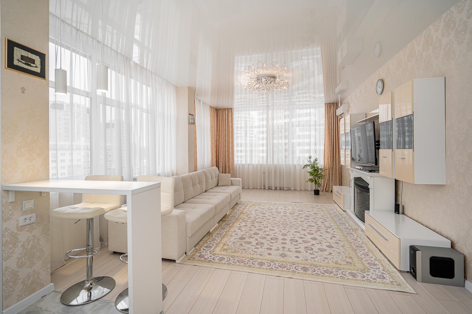 Квартира находится в удобном расположении, всего в 350 метров от станции метро «Восток», что облегчает передвижение по городу. В непосредственной близости находится торговый центр Dana Mall и «Первый Национальный Торговый дом», где вы сможете найти все необходимое — от магазинов и кафе до развлекательных заведений.