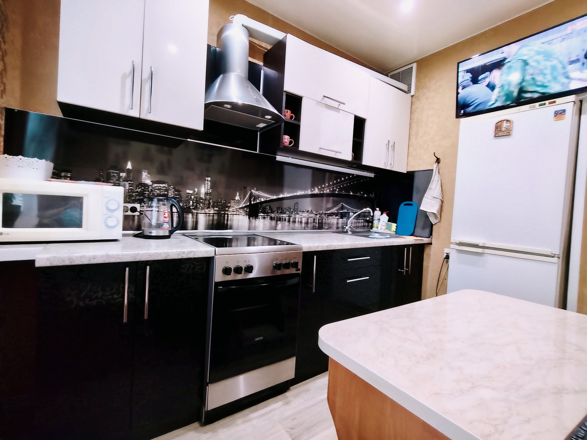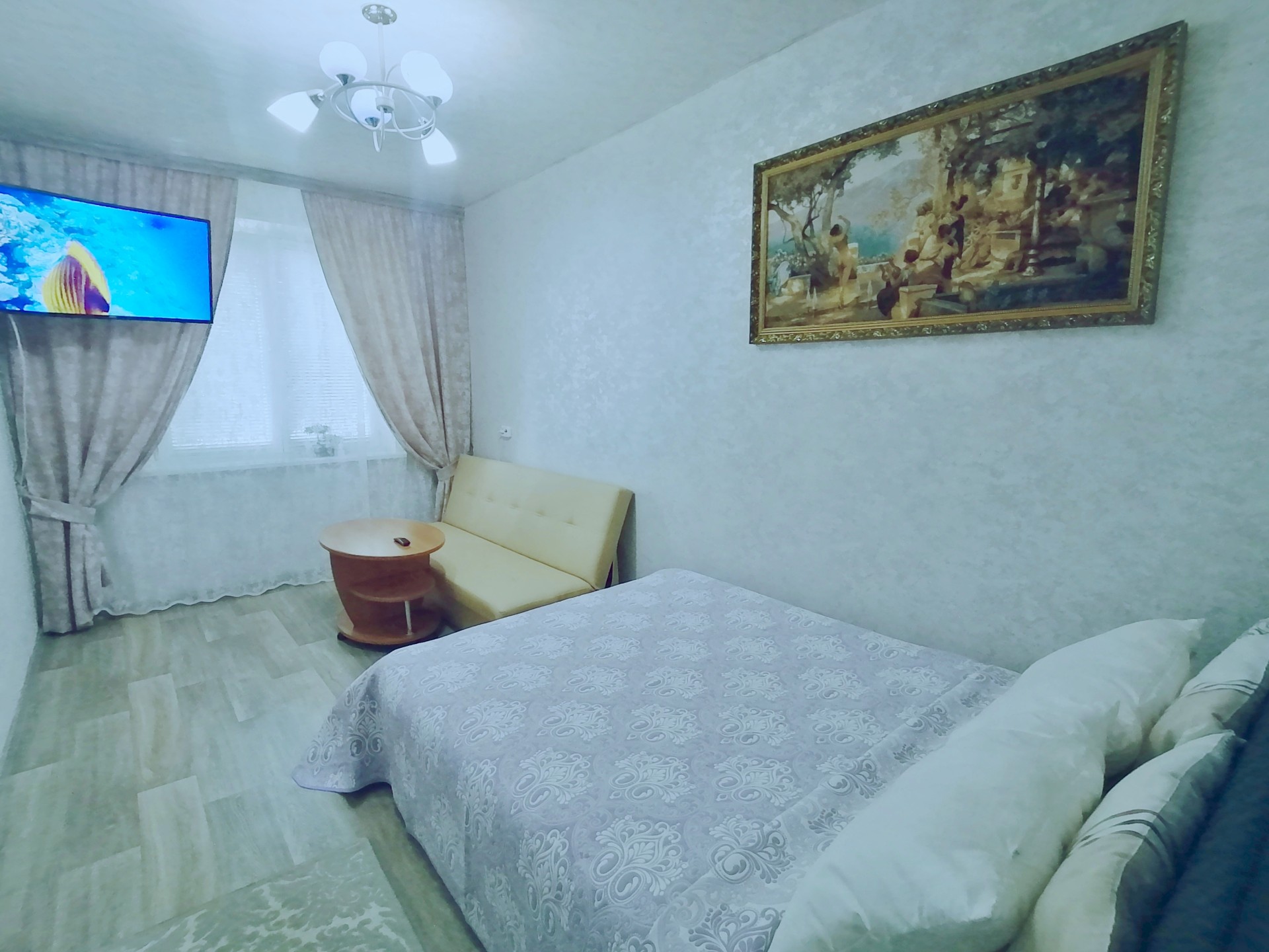 УдобстваБеспроводной интернет Wi-Fi, Телевизор, Домофон, Полотенца, Кабельное/спутниковое телевидение, Постельное бельё, Мыло, Туалетная бумага, Стиральная машина, Кофе, чай, Утюг, Фен, Шампунь, Лифт, Ванна, Охраняемая парковка поблизости, Холодильник, Микроволновая печь, Посуда