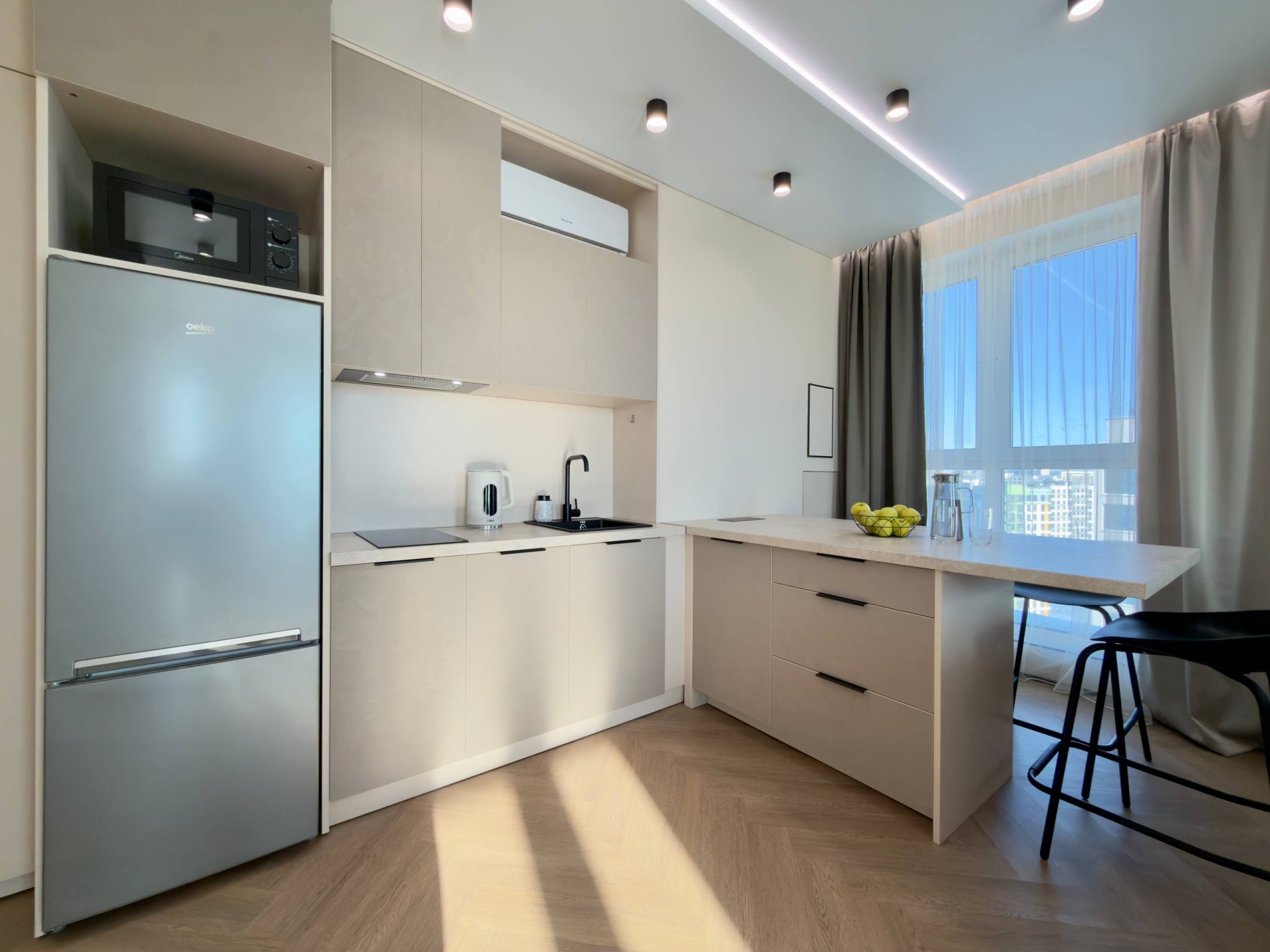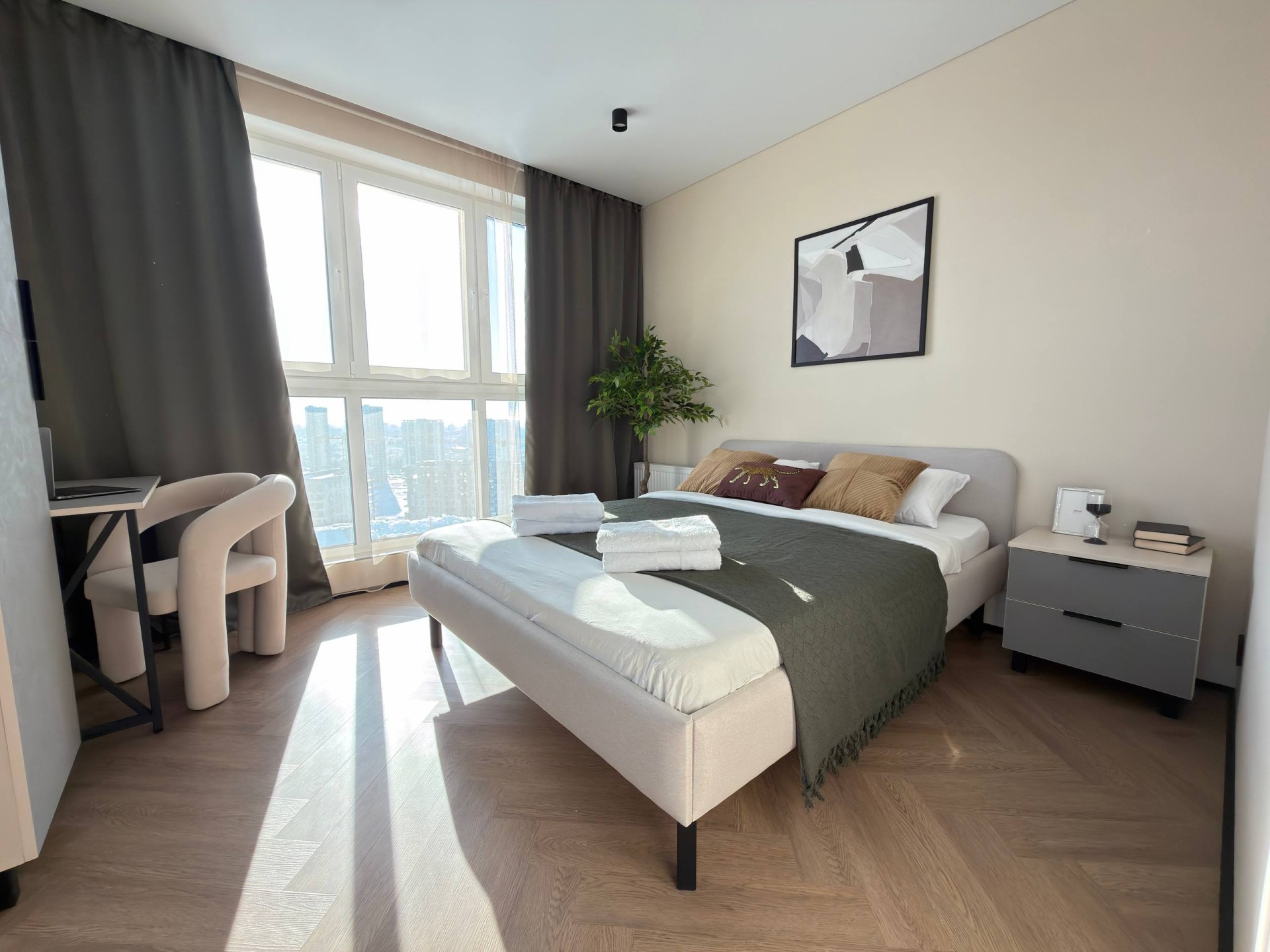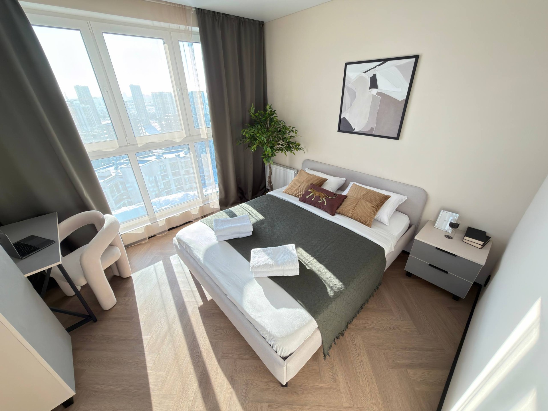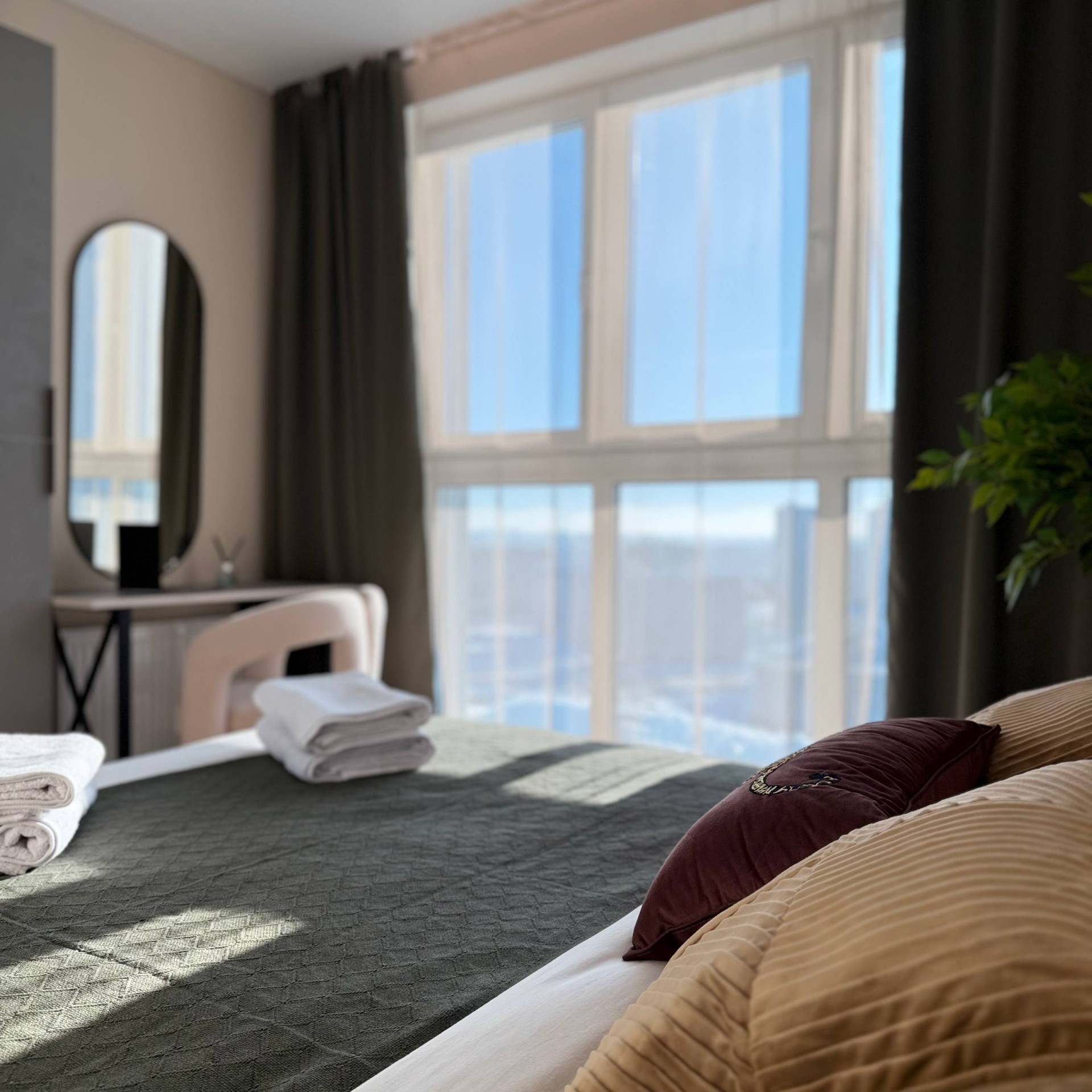 Апартаменты, квартира (комфорт+) под названием «саквояж», ждут своих гостей в г. Минске. Квартира расположена в новом доме жилого комплекса ЖК "minsk world" на 21 этаже с панорамным видом на город.