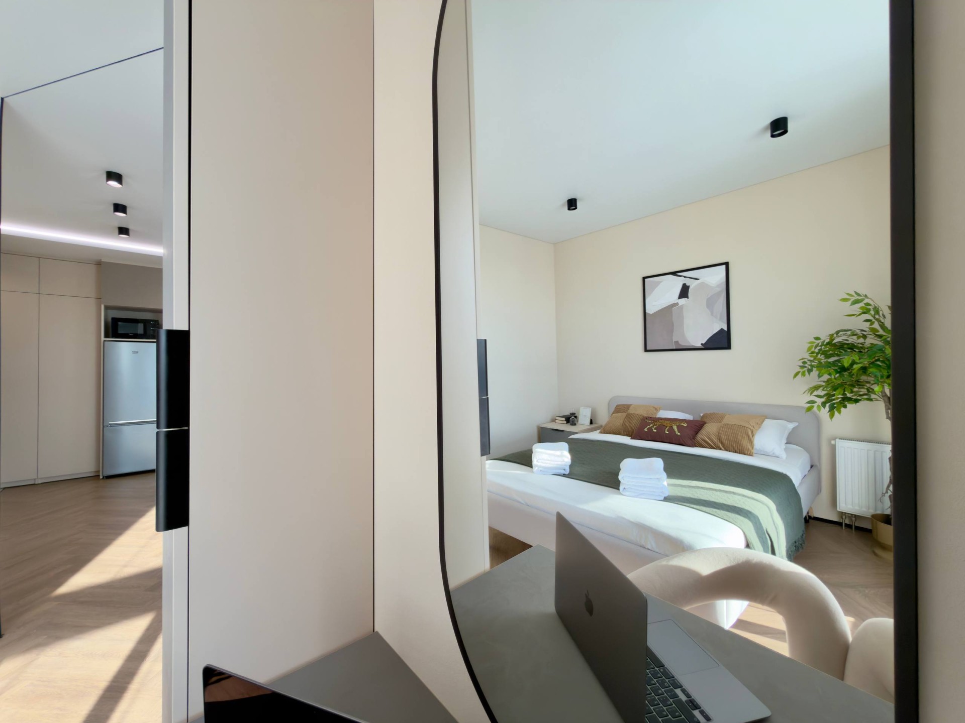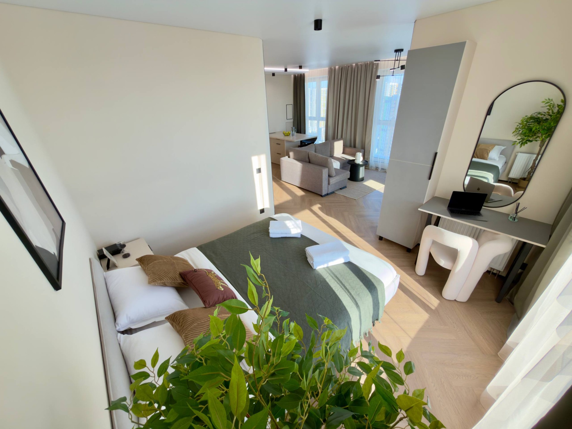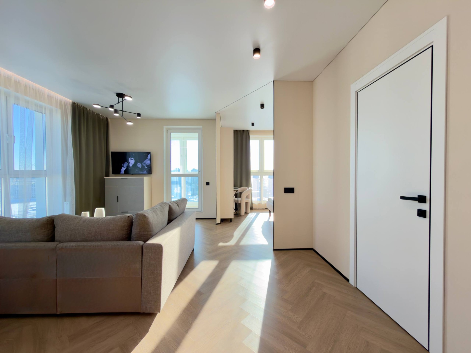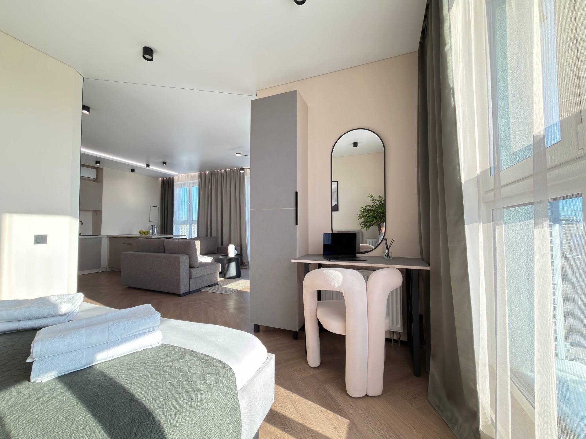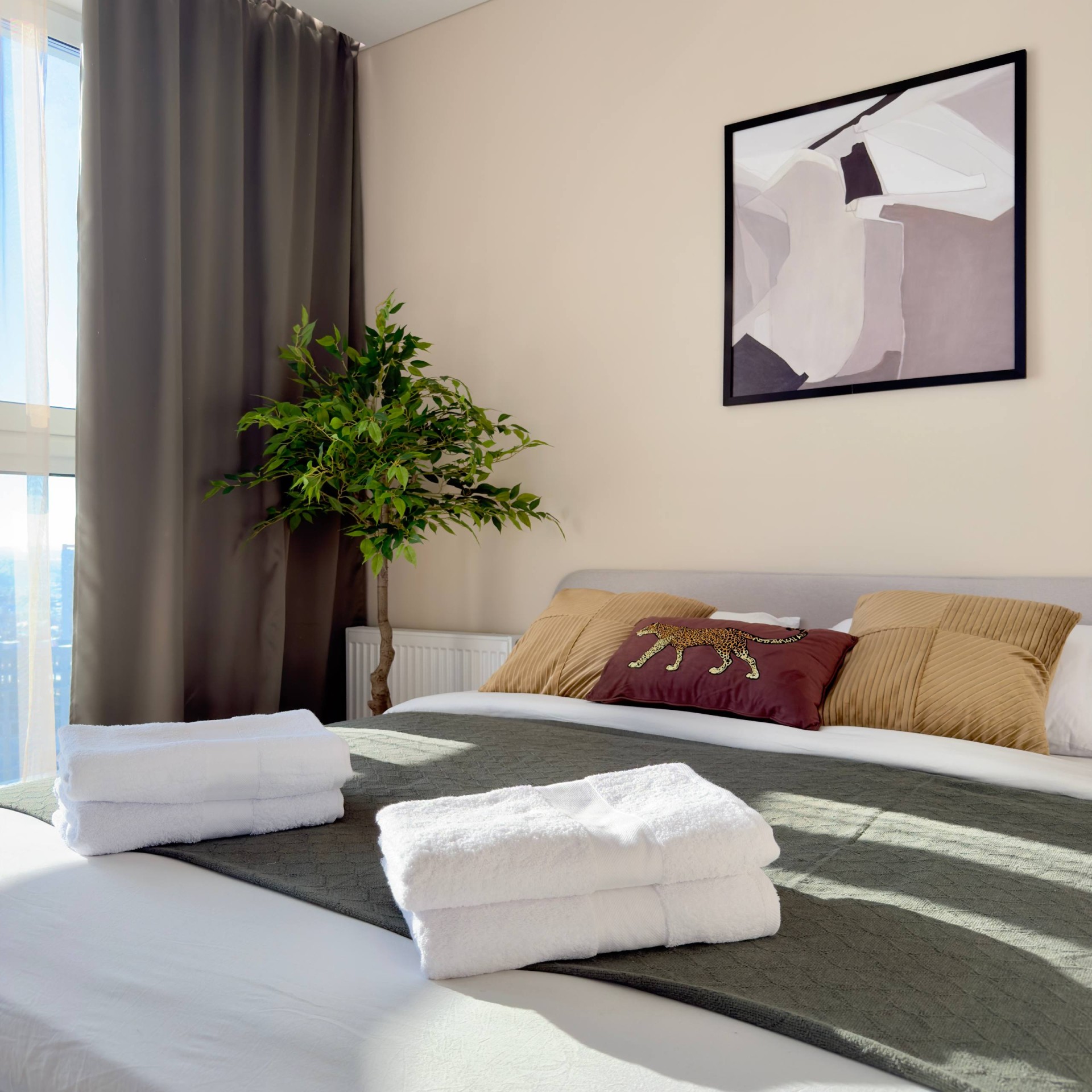 Апартаменты, квартира (комфорт+) под названием «саквояж», ждут своих гостей в г. Минске. Квартира расположена в новом доме жилого комплекса ЖК "minsk world" на 21 этаже с панорамным видом на город.