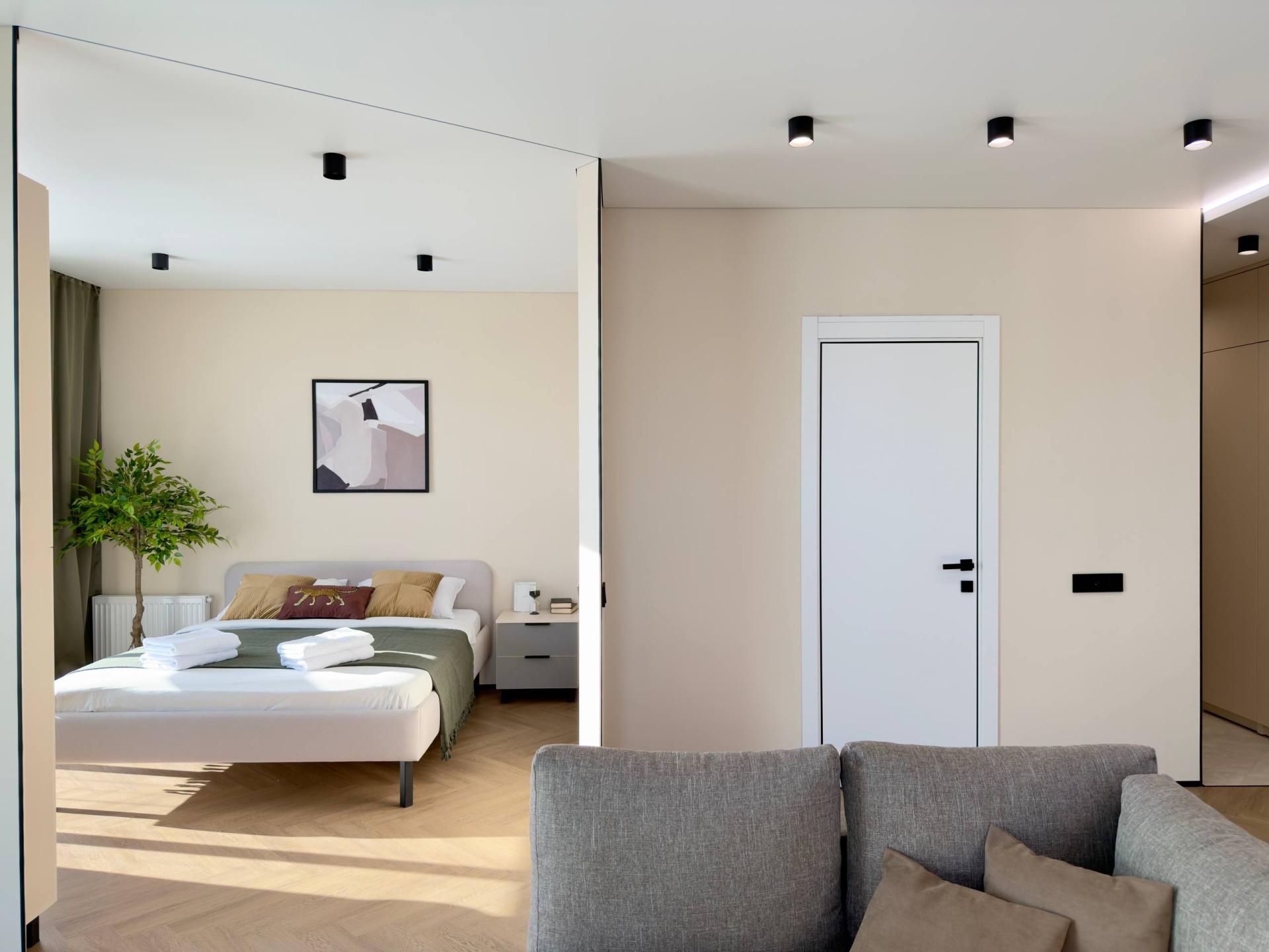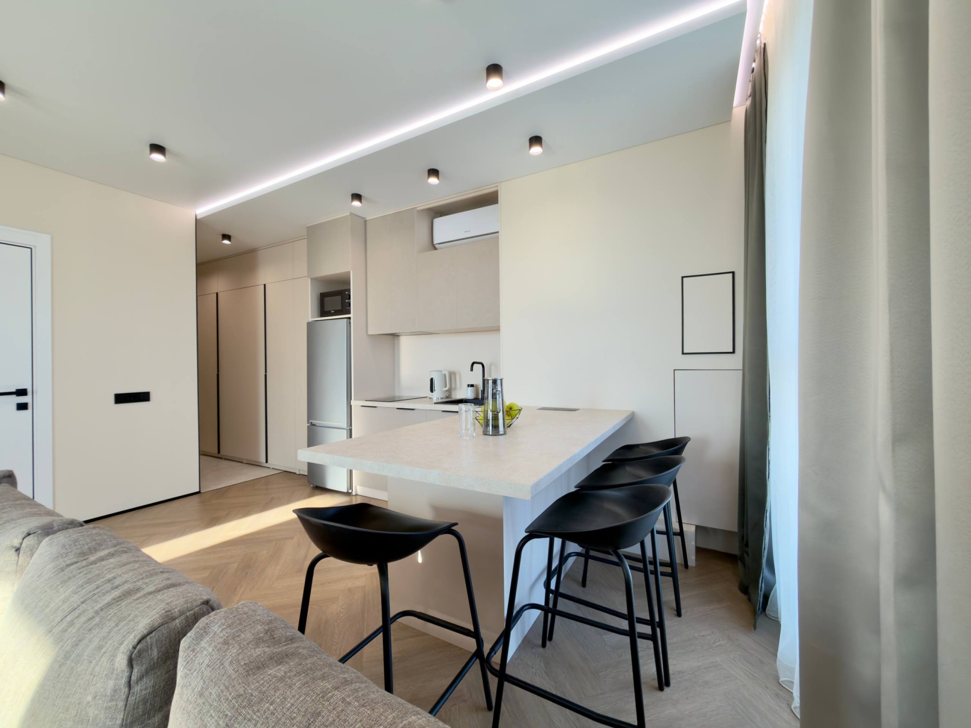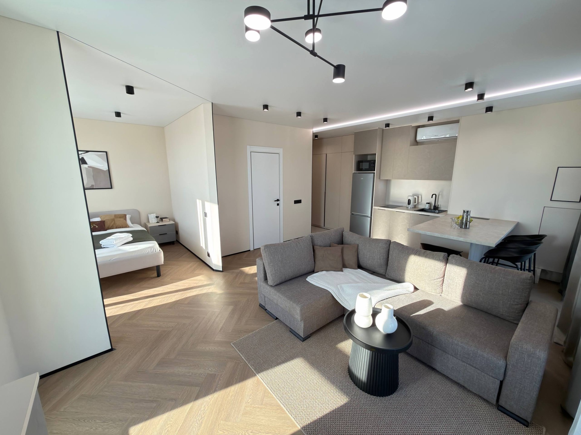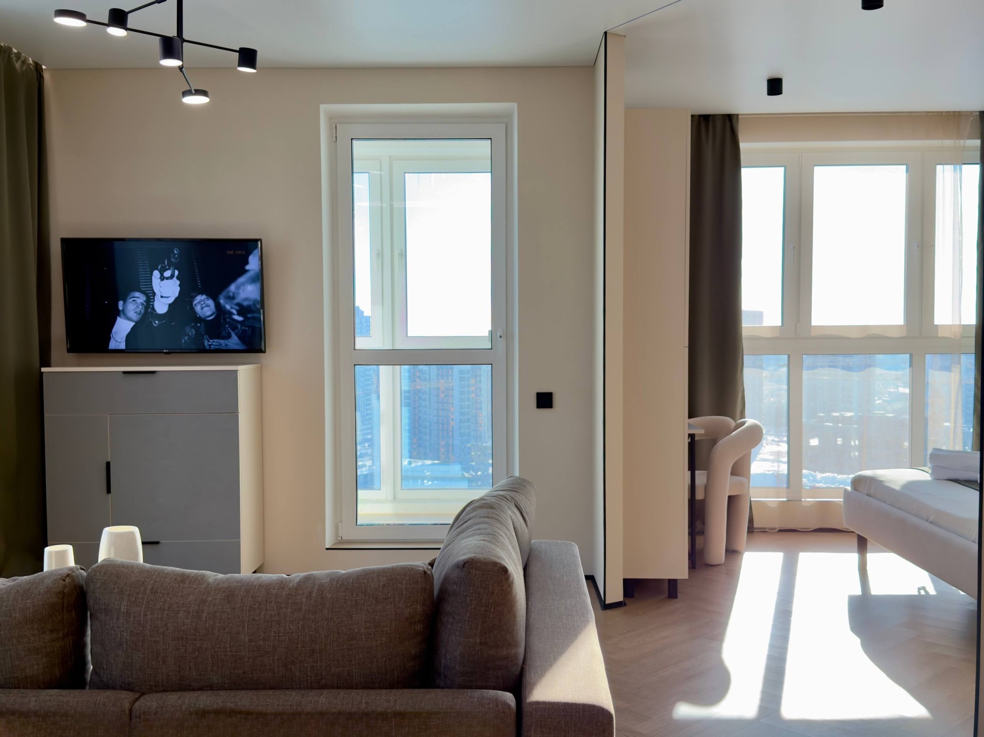 Апартаменты, квартира (комфорт+) под названием «саквояж», ждут своих гостей в г. Минске. Квартира расположена в новом доме жилого комплекса ЖК "minsk world" на 21 этаже с панорамным видом на город.