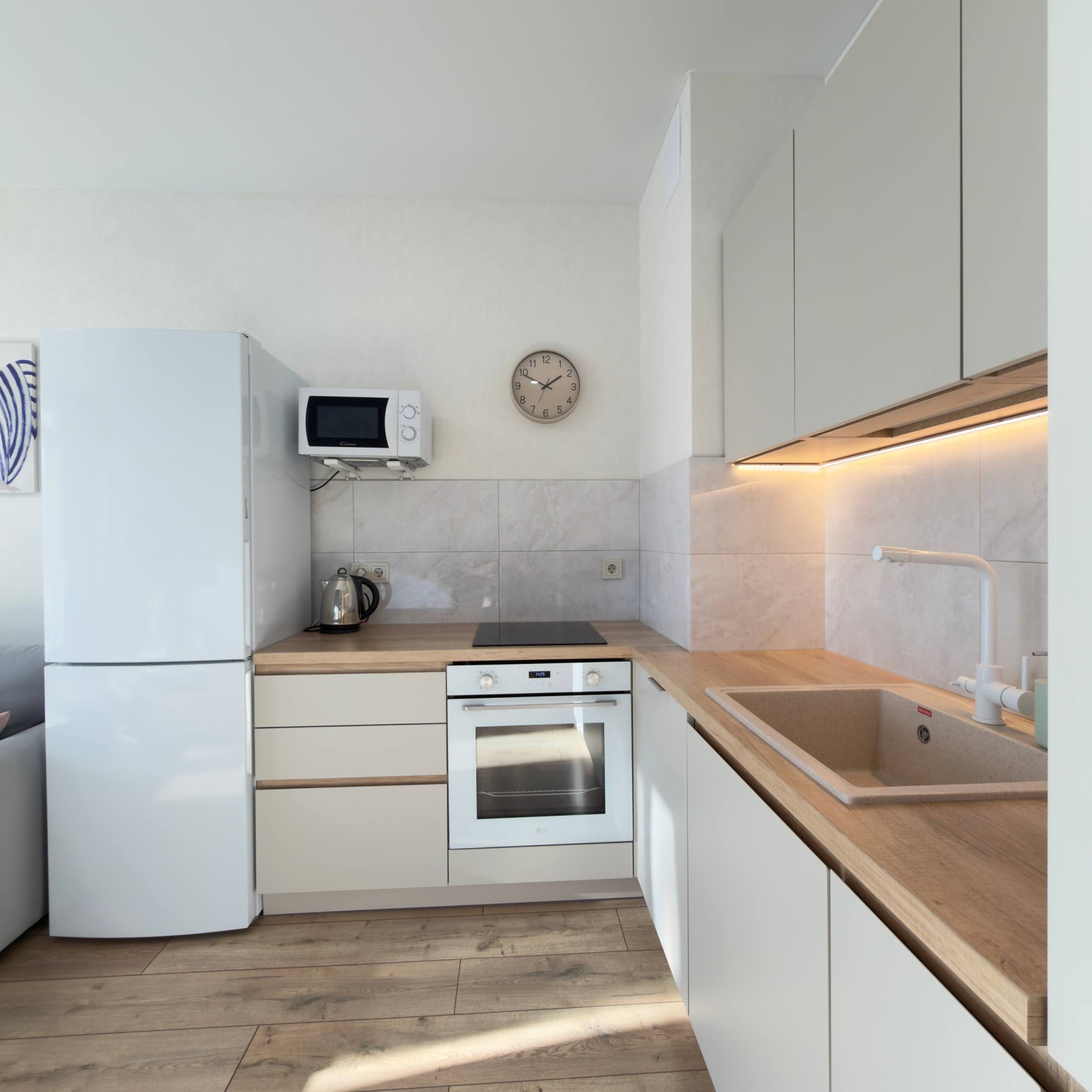 - СВЧ печь, духовой шкаф, электроплита, холодильник.