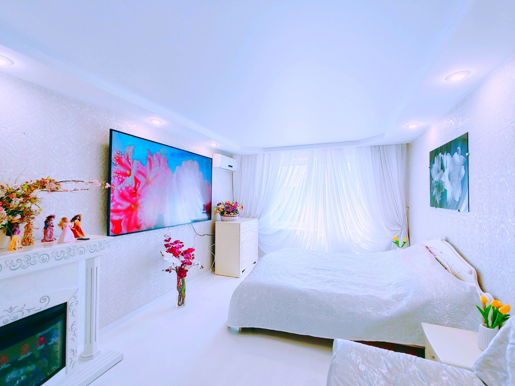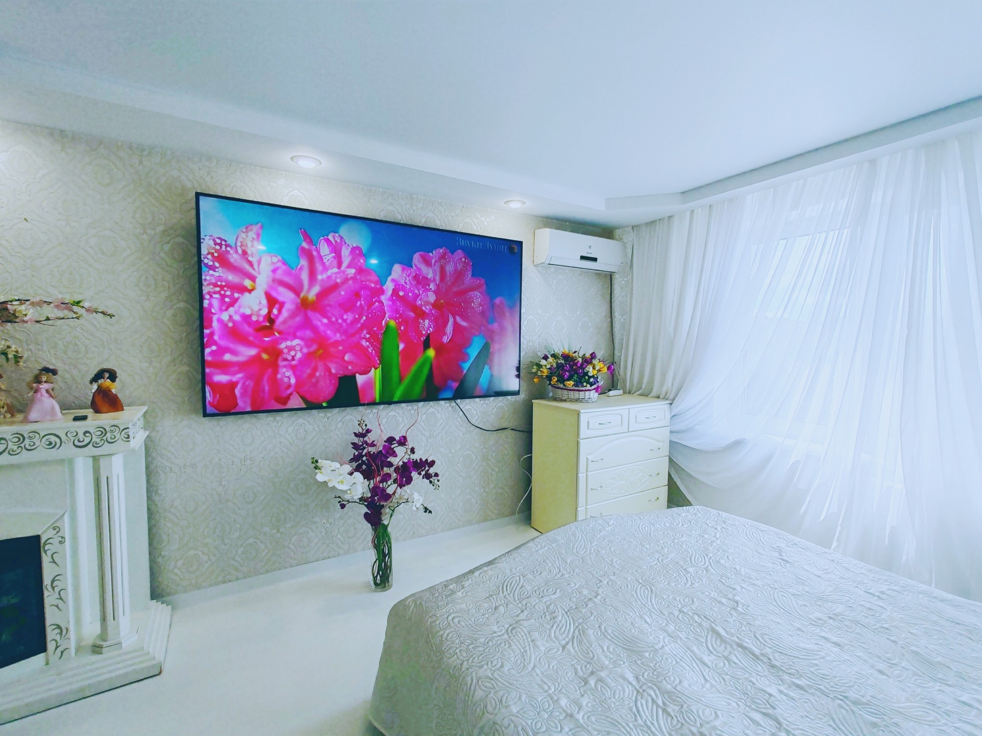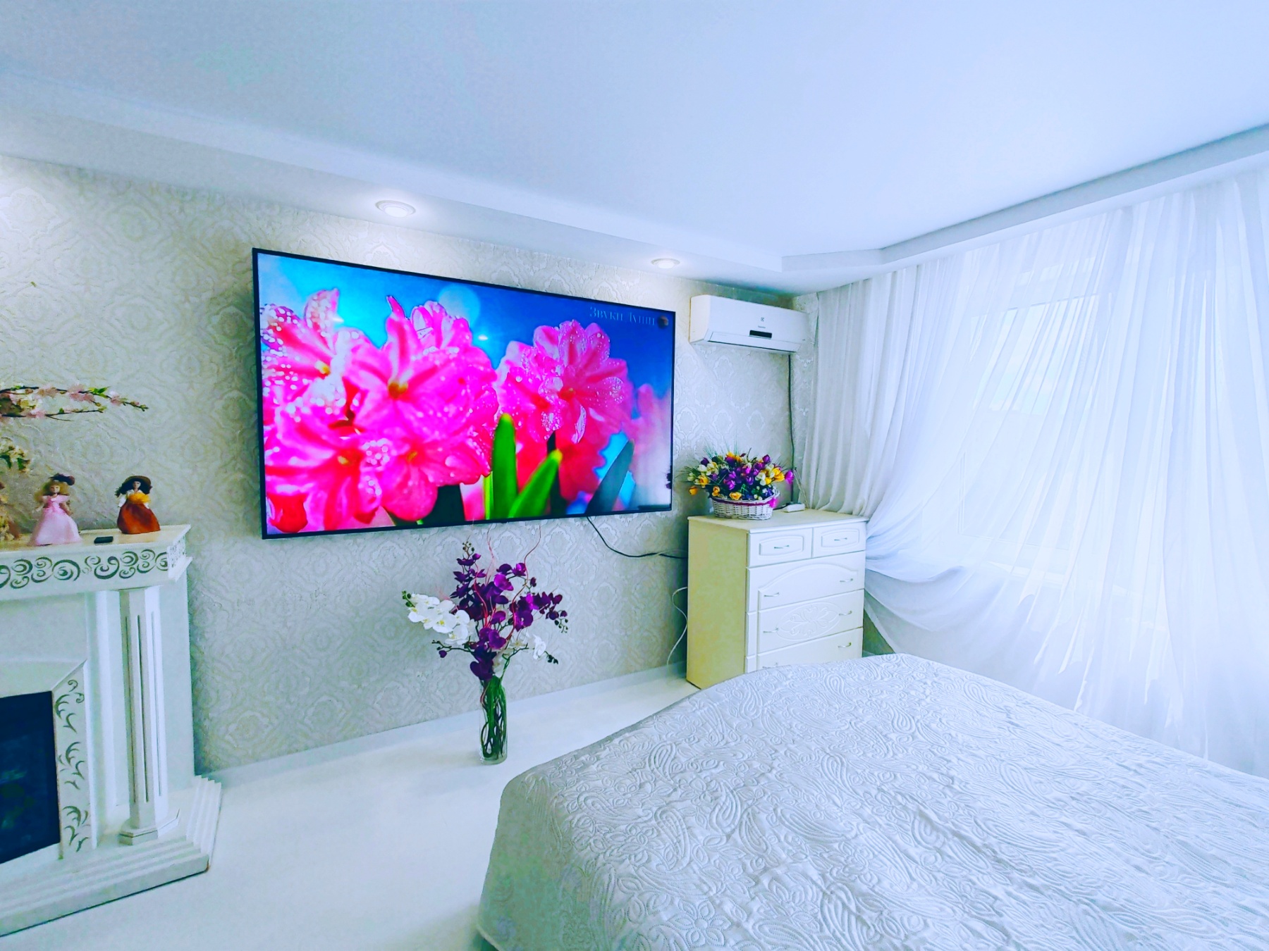 Шикарная светлая, просторная квартира в белых тонах с САМЫМ большим TB (86 дм и smart tv) в 7-ми минутах от метро "Каменная горка"
